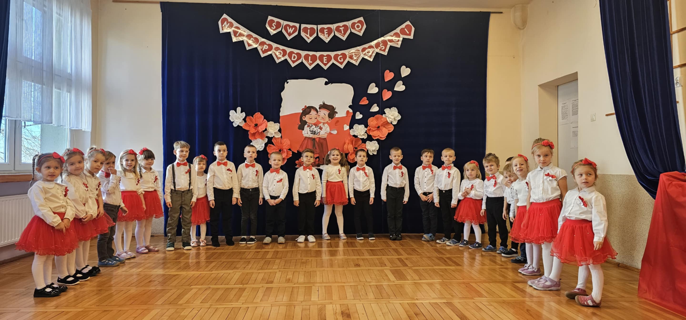W naszym przedszkolu uczciliśmy Narodowe Święto Niepodległości. Dzieci z Grupy Zielonej z wielkim zaangażowaniem przygotowały piękny występ pełen piosenek, wierszy i symboli narodowych. Przedszkolaki z dumą odśpiewały hymn państwowy, zaprezentowały taniec z kwiatami w barwach biało - czerwonych. Przypomniały wszystkim, jak ważna jest wolność, miłość do ojczyzny i szacunek do narodowych symboli.